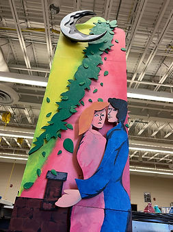 This piece was displayed at the Dr. Phillips Center for two weeks as a part of "UCF Celebrates the Arts," an event focused on showcasing student work. My focus for "Aurore" was prop design, painting, and fabrication, as well as serving as the team researcher on Marc Chagall, his history, and the evolution of his style.